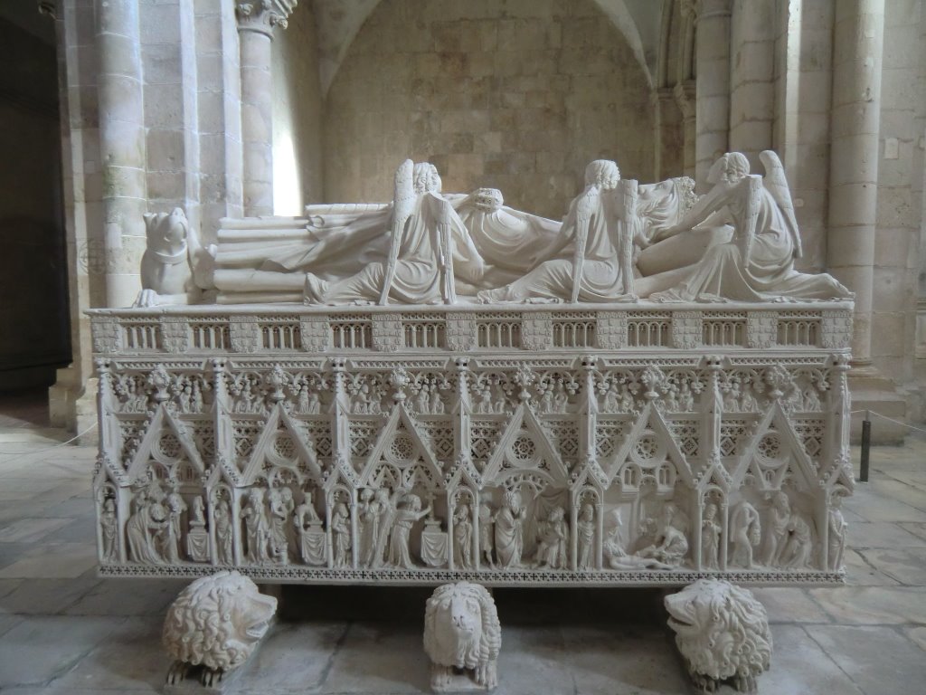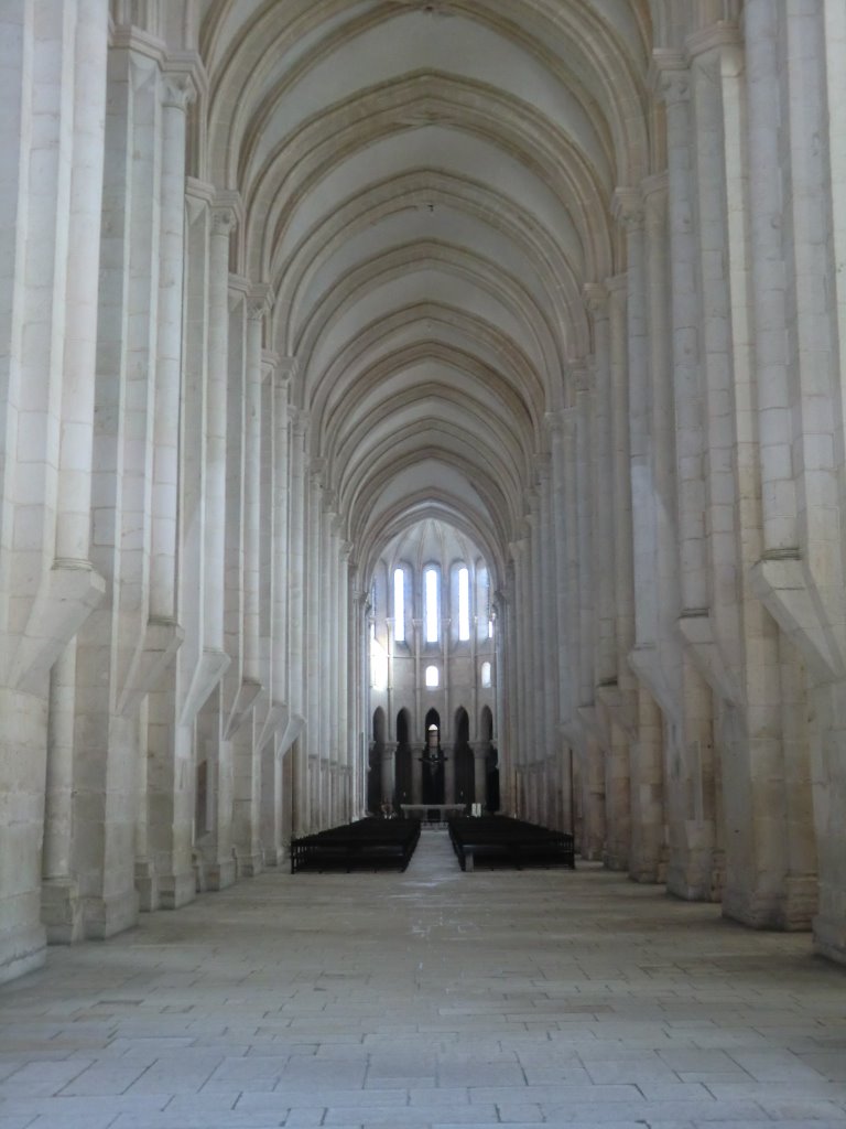 Un peu plus au nord, nous trouvons un monastère tout à fait différent : Alcobaça. On y trouve beaucoup moins d'ornementation. Ceci est bien compréhensible. En effet, Alcobaça était le plus grand monastère cistercien du Portugal. Le roi avait fait don de terres pour que l'ordre de Saint Bernard de Clairvaux puisse se développer au Portugal. Il règne dans l'église abbatiale une grande simplicité et une forte spiritualité. Aucune peinture, aucune sculpture ne devait perturber les moines dans leurs prières. Dans le transept, on peut admirer les tombes de Pedro et Inès. Leur histoire d'amour tragique est l'une des plus connues au Portugal.