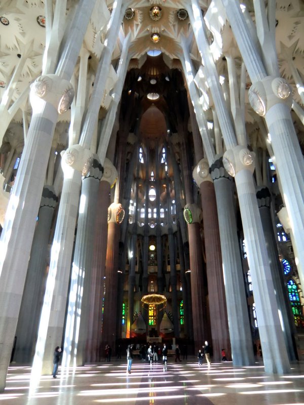 A l'intérieur, par contre, c'est le spectacle assuré. Les échafaudages ont disparu pour laisser place à une forêt d'arbres de pierre. C'était l'objectif, la vision de Gaudi : se rapprocher le plus possible de la nature. L'architecte catalan s'appuyait très peu sur les ouvrages d'architecture. Il disait que toutes les réponses se trouvaient en observant la nature depuis la fenêtre de son bureau.
