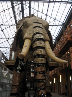 +33 6 62 19 61 67Vous l'avez bien traduit evidemment: "Favet Neptunus Eunti" = "Neptune favorise ceux qui voyagent". Il s'agit de la devise de Nantes. Nous ne pouvons pas vraiment nous prononcer sur les avantages accordés par Neptune aux voyageurs. Même s'il est vrai que Guides, nous n'avons pas trop à nous plaindre... C'est même la belle vie, par exemple lorsque le voyage nous mène à Nantes (2h TGV depuis Paris, un peu plus long en cas de grève...). En parlant de trains, arrivé à Nantes, il ne faut pas être rebuté par la gare. Il faut bien le dire, elle est très moche. Mais, une fois quittée, la magie commence à opérer. Les panneaux "Machines de l'ile" sont partout. On ne peut resister à la tentation, les machines sont notre première decouverte. Les anciens ateliers maritimes situés sur l'ile ont fermé en 1987. L'ile se transforme. Aujourd'hui, elle est un très bel espace de loisirs et de detente. Lorsque le projet arrivera à bon port, les jardins contemporains en bord de Loire seront magnifiques. Lors de la promenade en bord de Loire, vous ne pourrez pas manquer le Palais de justice, signé Jean Nouvel.