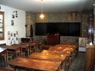 La commune de Oeuilly et l'association champenoise ont eu l'excellente idée de faire revivre l'école 1900. La salle de classe possède tous les éléments d'époque: les bureaux, le tableau noir, la blouse ainsi que le bonnet d'âne et la règle pour les mauvais élèves turbulents. Les pétillantes animatrices du patrimoine peuvent elles se transformer en sévères institutrices? Sans doute si les résultats au certif ne sont pas bons. Le certif, c'est l'examen de fin de cycle primaire. Cet examen nationalisé en 1882 permettait au élèves du monde rural l'accès au cours complementaire, puis l'ecole superieure. Pour accéder, peut être, un jour, au métier rêvé d'instituteur. On passe dans un premier temps cet examen à 11 ans, puis 12 et 14, après guerre.