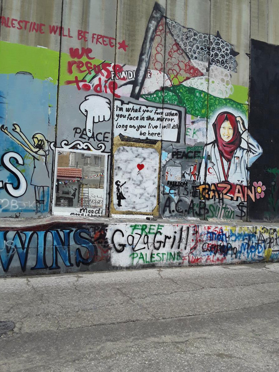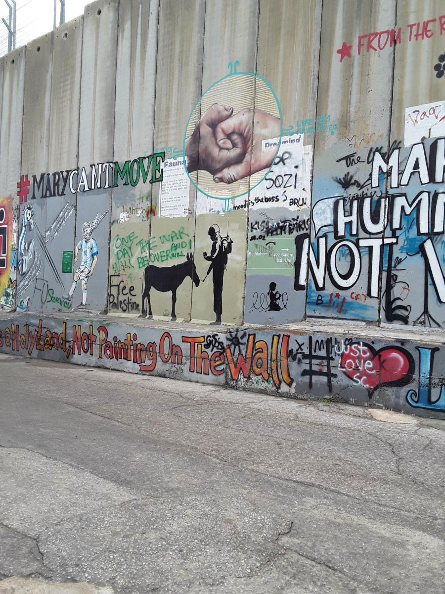 Le « Mur de la séparation » entre Israël et la Palestine a été construit en 2002. Il s’étend sur plus de 700 km. Il fait 8 mètres de haut (2 fois plus haut que le mur de Berlin en son temps)