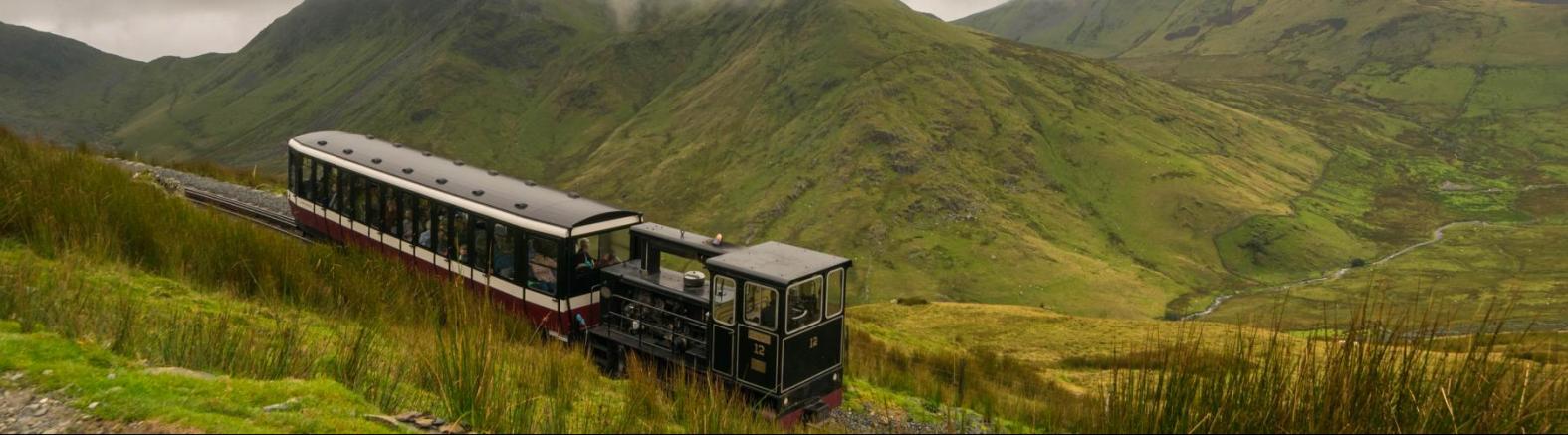 Dans l'après midi, dans la ville de Llanberis vous embarquez à bord d'un train qui vous conduira au sommet du Snowdon : la montagne la plus haute de Grande Bretagne (1085m)